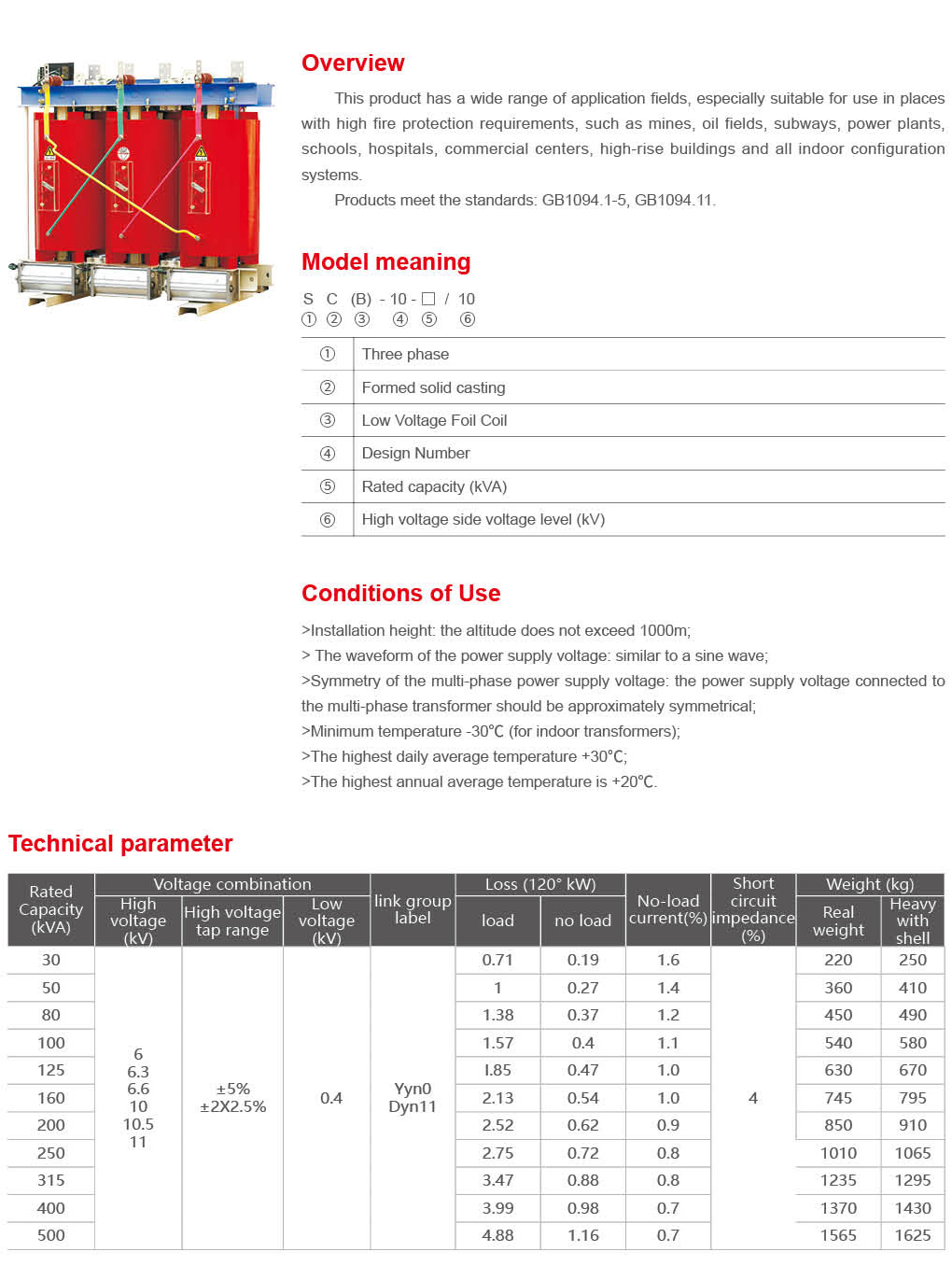 SC(B)10 Epoxy resin cast dry type transformer